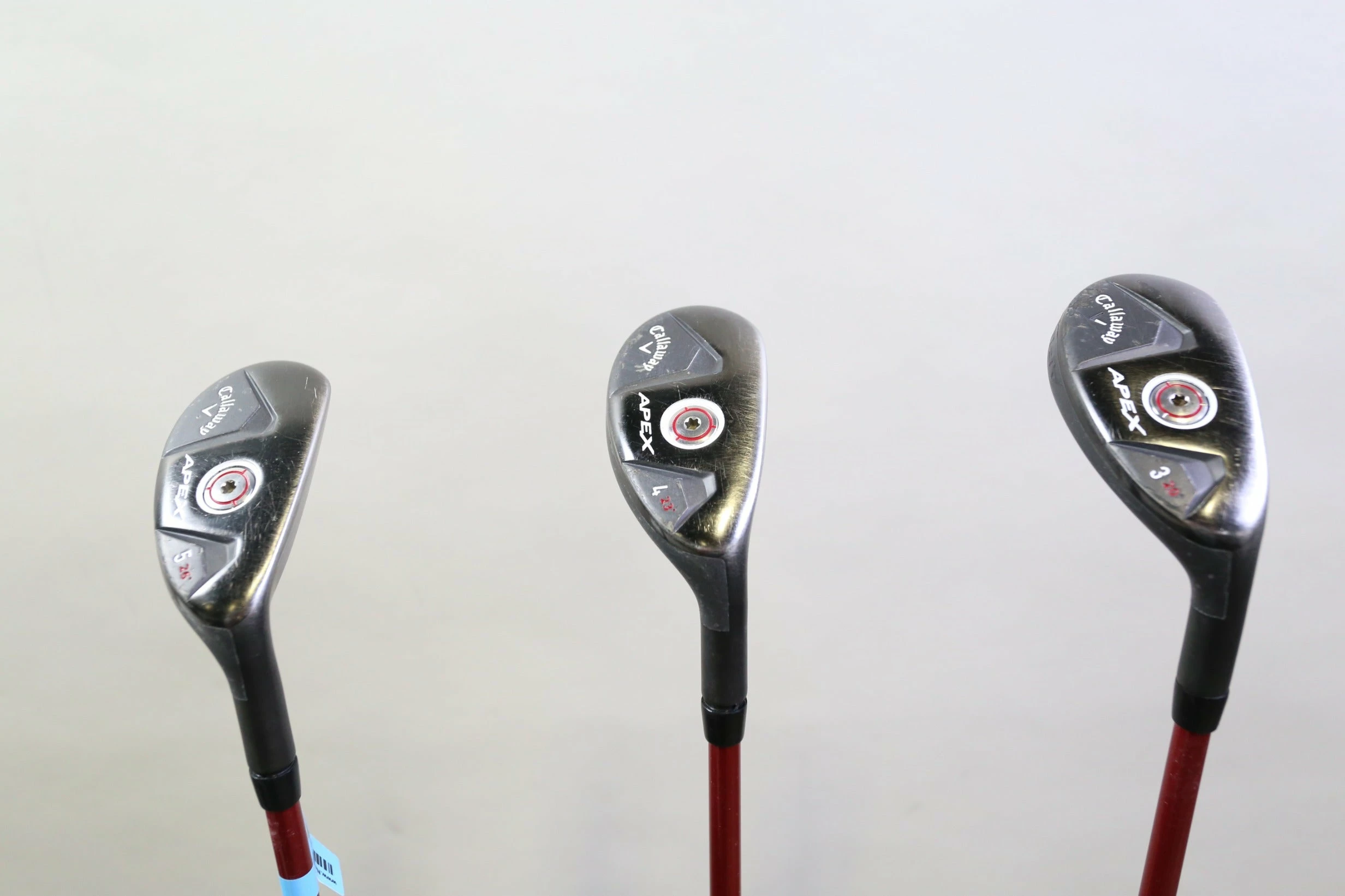 GOOD – This hybrid set is in good condition. There is average wear around the heads and on the faces of the clubs from regular use. There are very small markings and scratches along the shafts from normal use and storage. The grips are in good condition with some wear from regular use and storage. Please see pictures for more details. *SPECS: 3H 20* 40 in, 4H 23* 39.5 in, 5H 26* 39 in